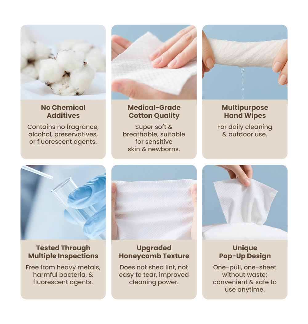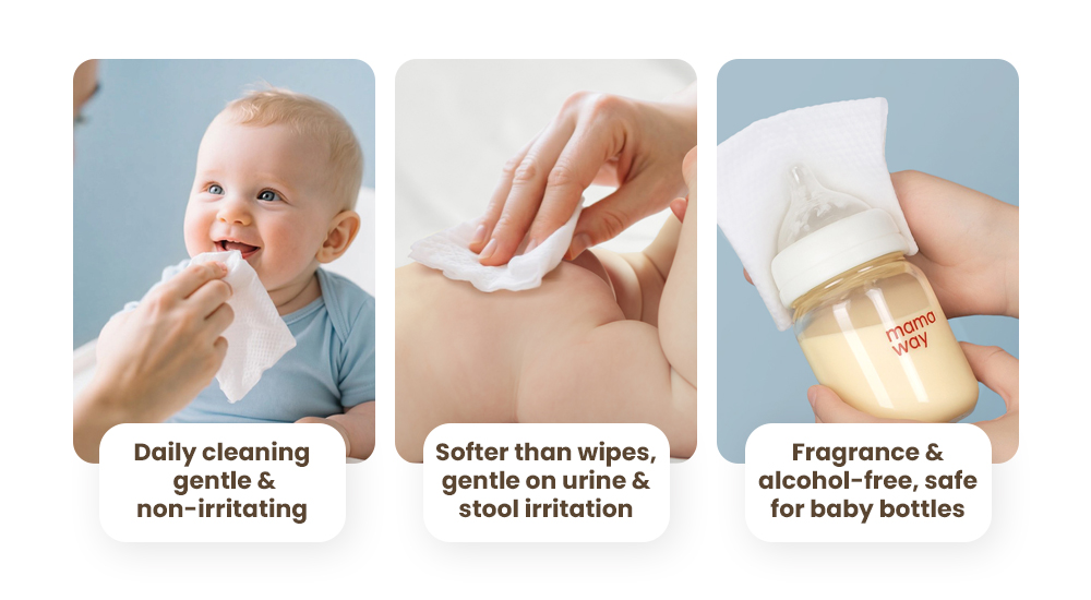 ● Suitable for both dry and wet use; versatile, disposable, hygienic — perfect for home or travel, for babies and adults alike.
