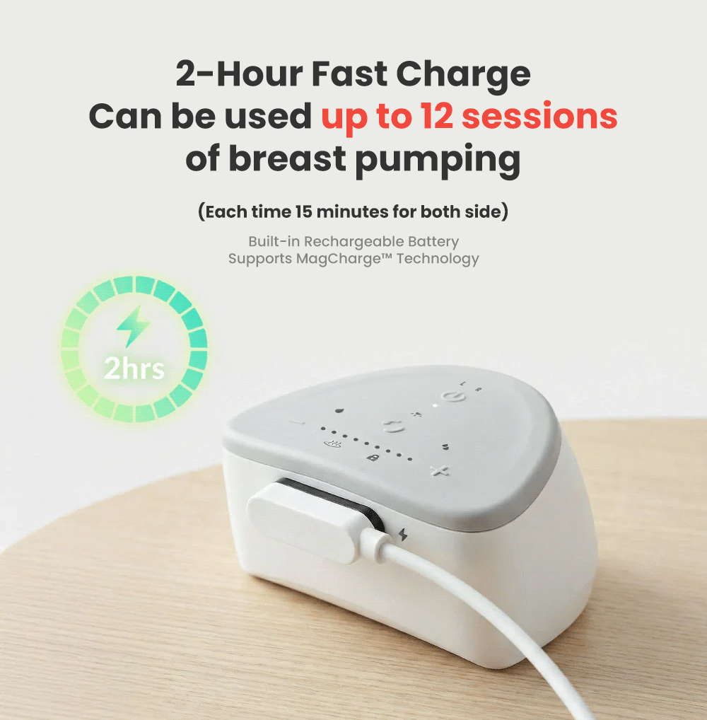 Powerful Battery Life: 2-hour charge supports 12 pumping sessions (based on 15 minutes of double pumping per session).