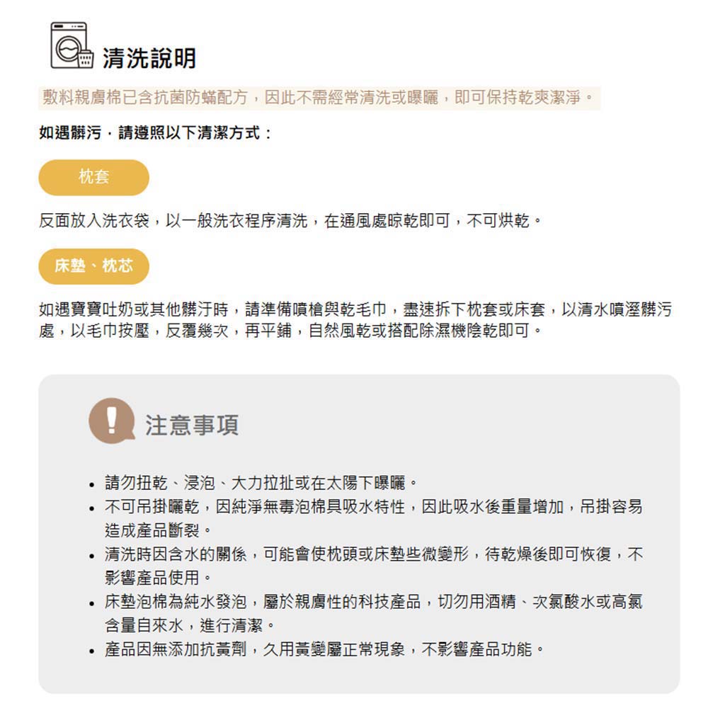 The mattress foam is water-foamed and is a skin-friendly high-tech product. Do not use alcohol, hypochlorous acid water, or tap water with high chlorine content for cleaning.