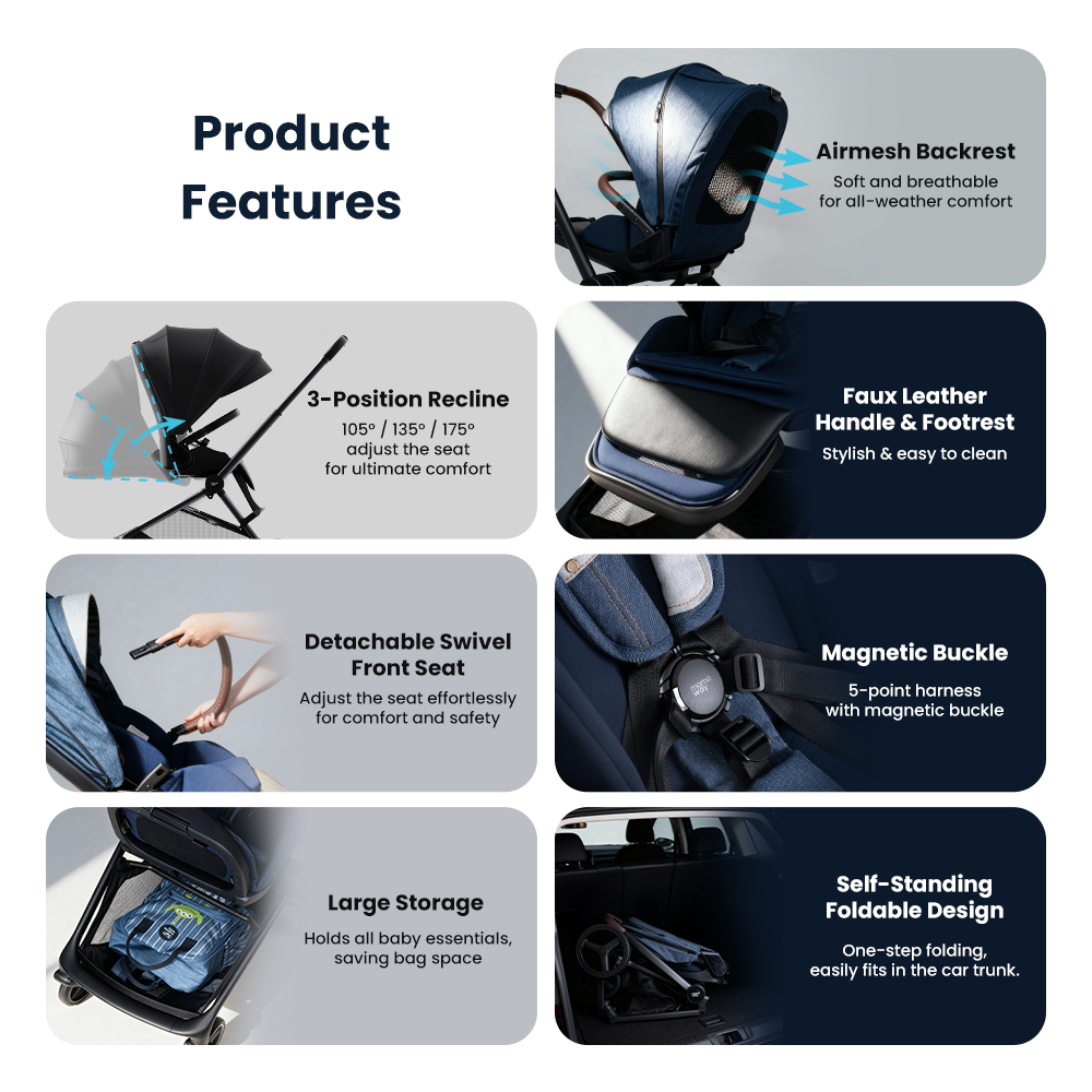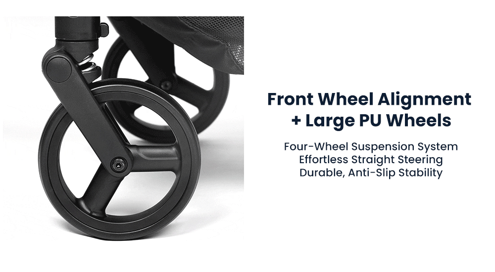 ● Aviation-grade Aluminum Frame: Lightweight, durable, and effortless to push