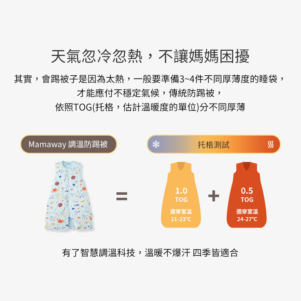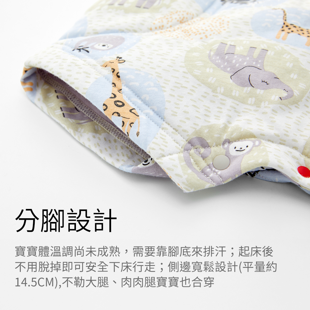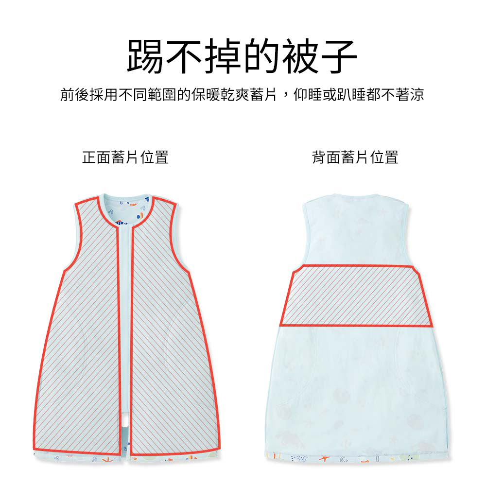 Go beyond tog with this sleeping suit to end night sweats for good! Adopts the advanced German clima fibre to actively regulate the baby's skin temperature, giving your bub years of sweat-free, comfortable sleep. 100% premium cotton outer layer with fillings that possess the antibacterial-zinc oxide element to eliminate germs and odours for your peace of mind. The summer style contains less filling at the back of the suit, making it more suitable for Spring and Summer.*Please note the slight colour difference on the back of the suit is caused by different amounts of filling inserted, this is normal and does not affect product performance.