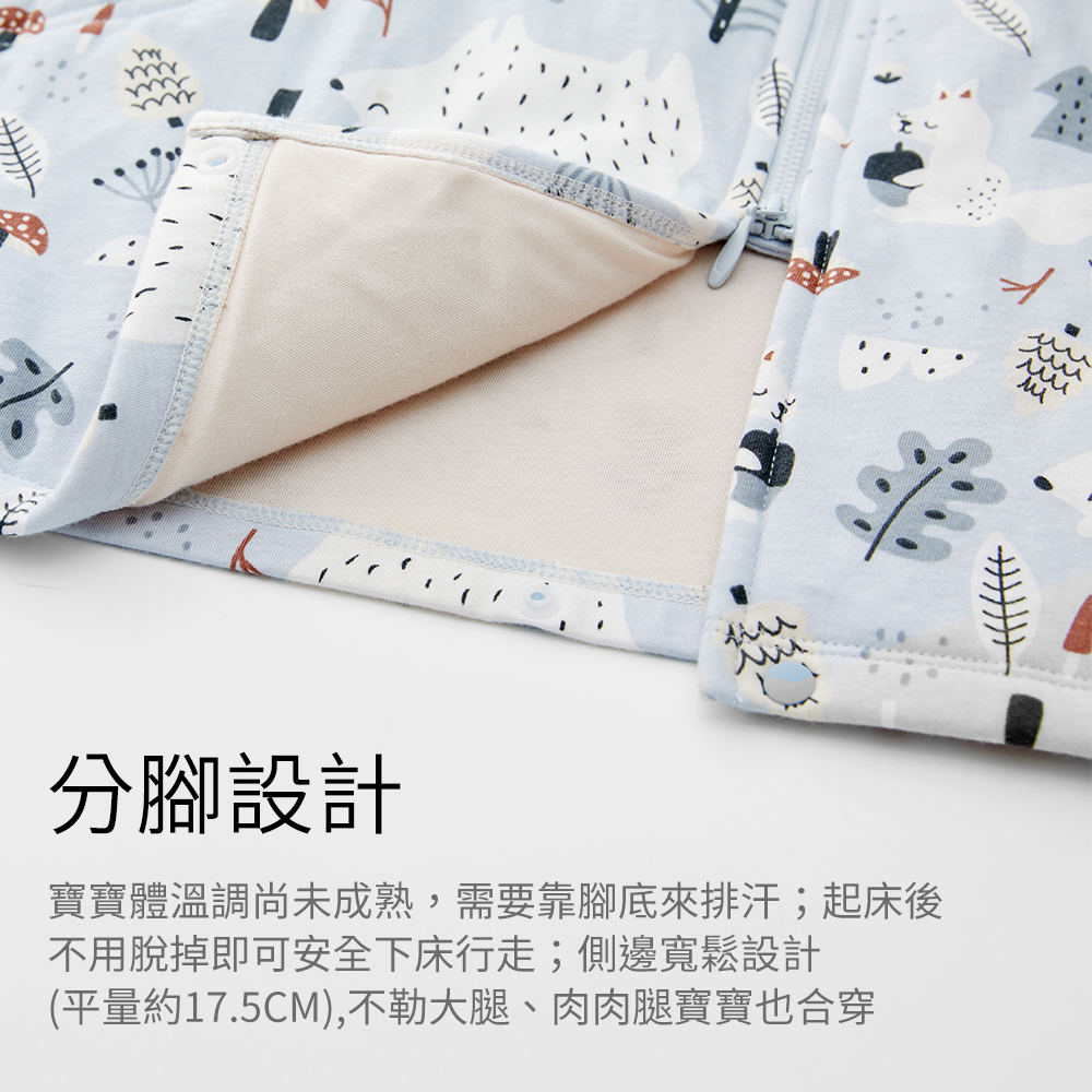 Go beyond tog with this sleeping suit to end night sweats for good! Adopts the advanced German clima fibre to actively regulate the baby's skin temperature, giving your bub years of sweat-free, comfortable sleep. 100% premium cotton outer layer with fillings that possess the antibacterial-zinc oxide element to eliminate germs and odours for your peace of mind. The summer style contains less filling at the back of the suit, making it more suitable for Spring and Summer.*Please note the slight colour difference on the back of the suit is caused by different amounts of filling inserted, this is normal and does not affect product performance.