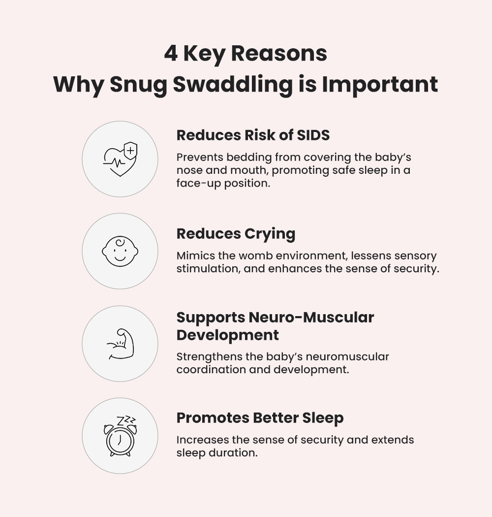 ● Mimics a mother’s embrace to help reduce startle reflexes during sleep.