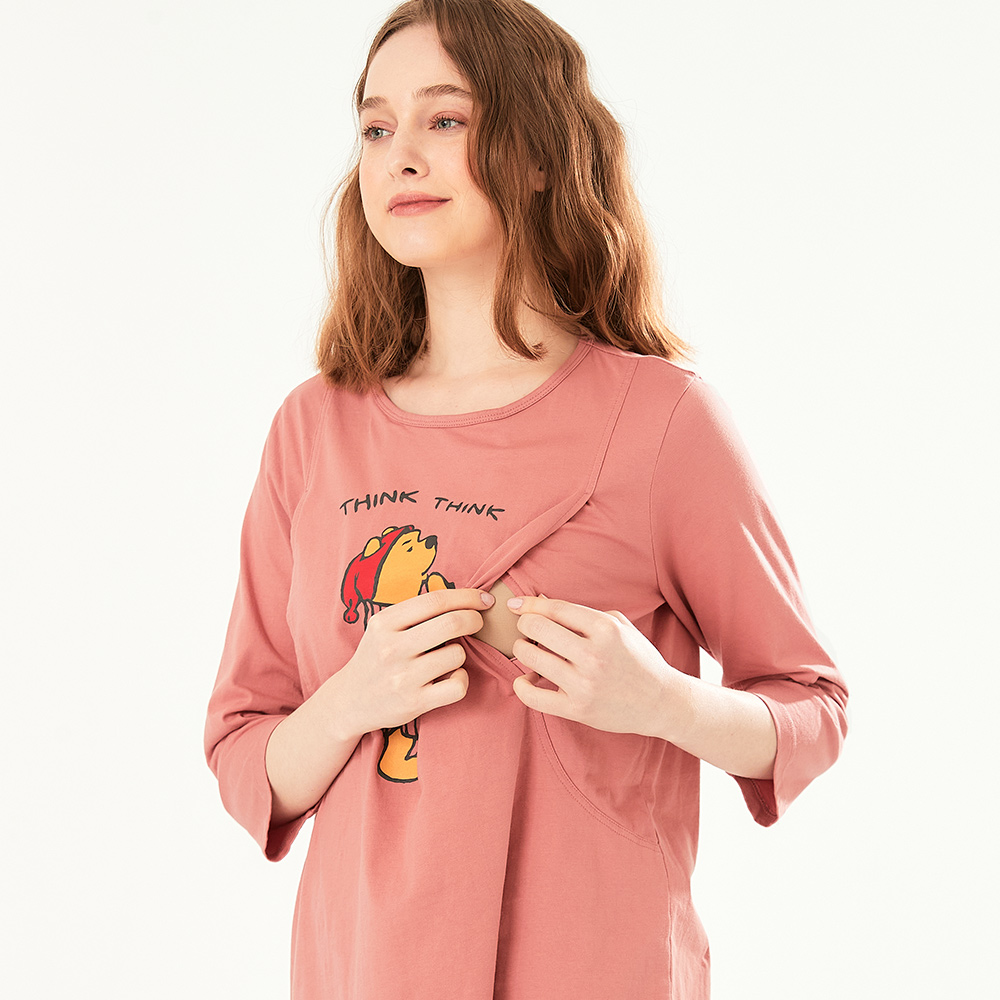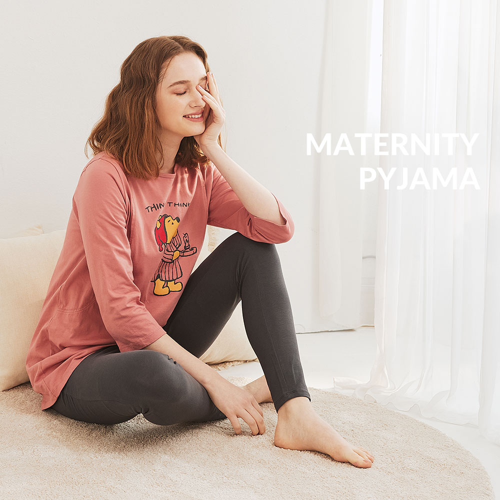 Disney Winnie The Pooh Maternity & Nursing Pyjama Set, soft and comfy throughout pregnancy, nursing and beyond. Adorable pattern is printed by non-toxic and environmental friendly elements. High waist elastic band provides support with your changing belly. Concealed opening on both sides for ease of breastfeeding.